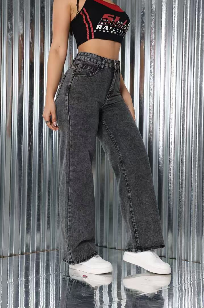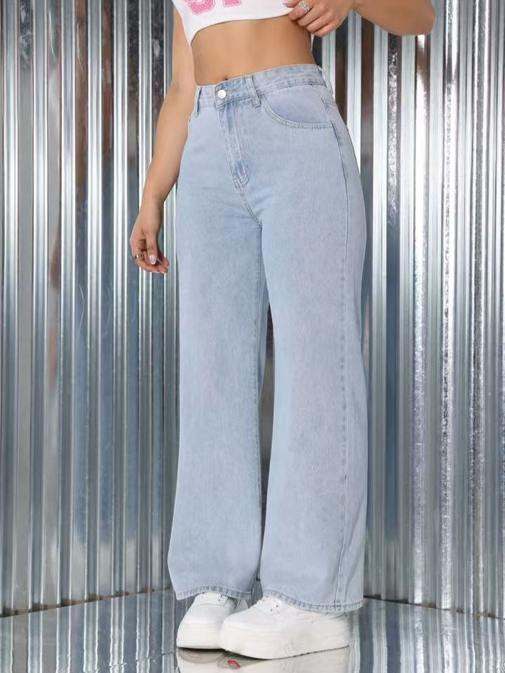 La taille mi-haute et la coupe droite et large offrent une silhouette flatteuse, agréable à porter et idéale pour un usage quotidien. Le denim robuste mais confortable, composé de coton avec un léger mélange de polyester, conserve bien sa forme et procure une sensation agréable, parfait pour la saison automnale.