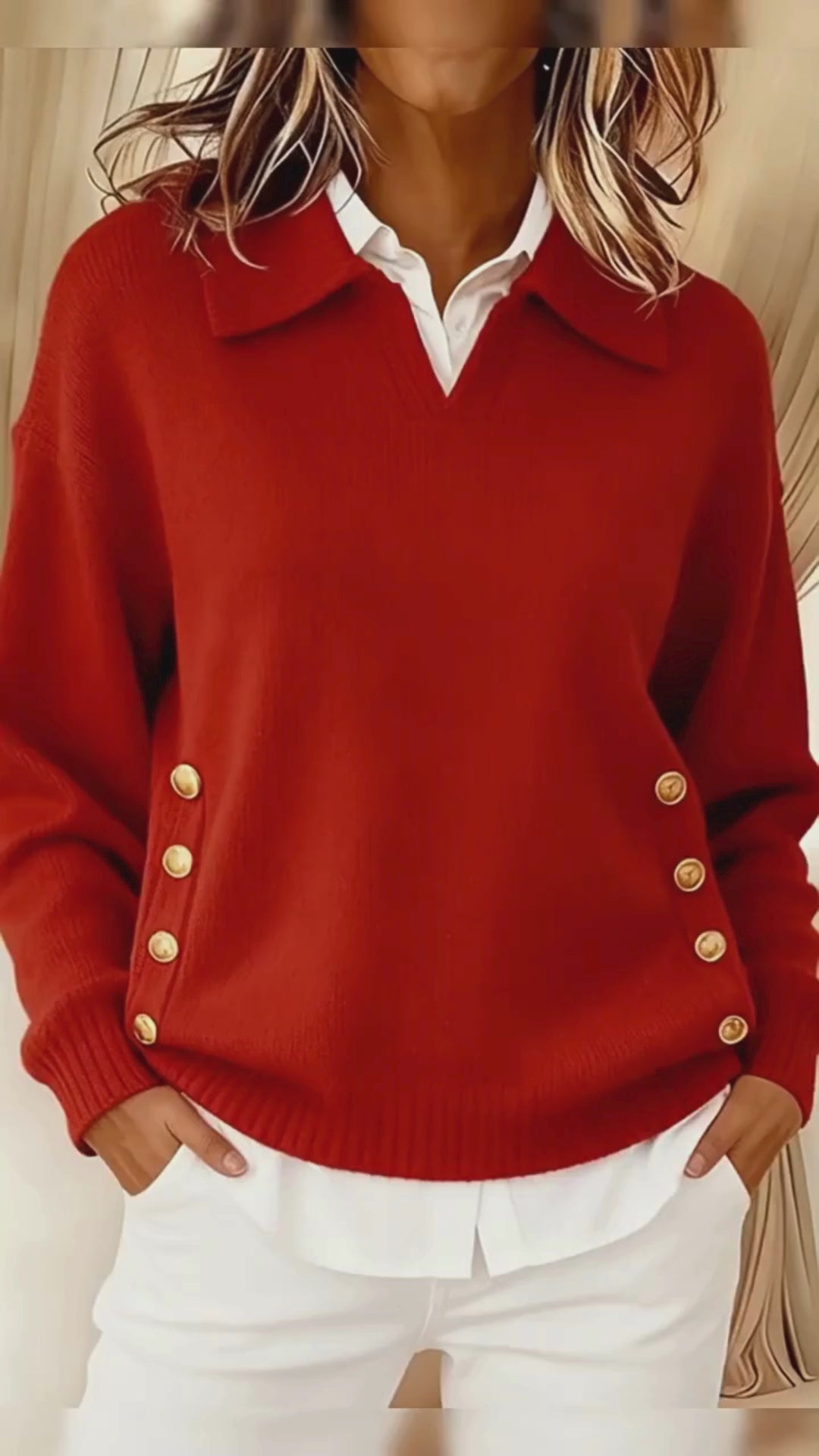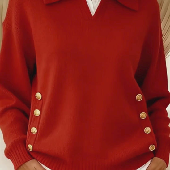 Avora Lyon | Pull uni à col V – tricot fashion ample
