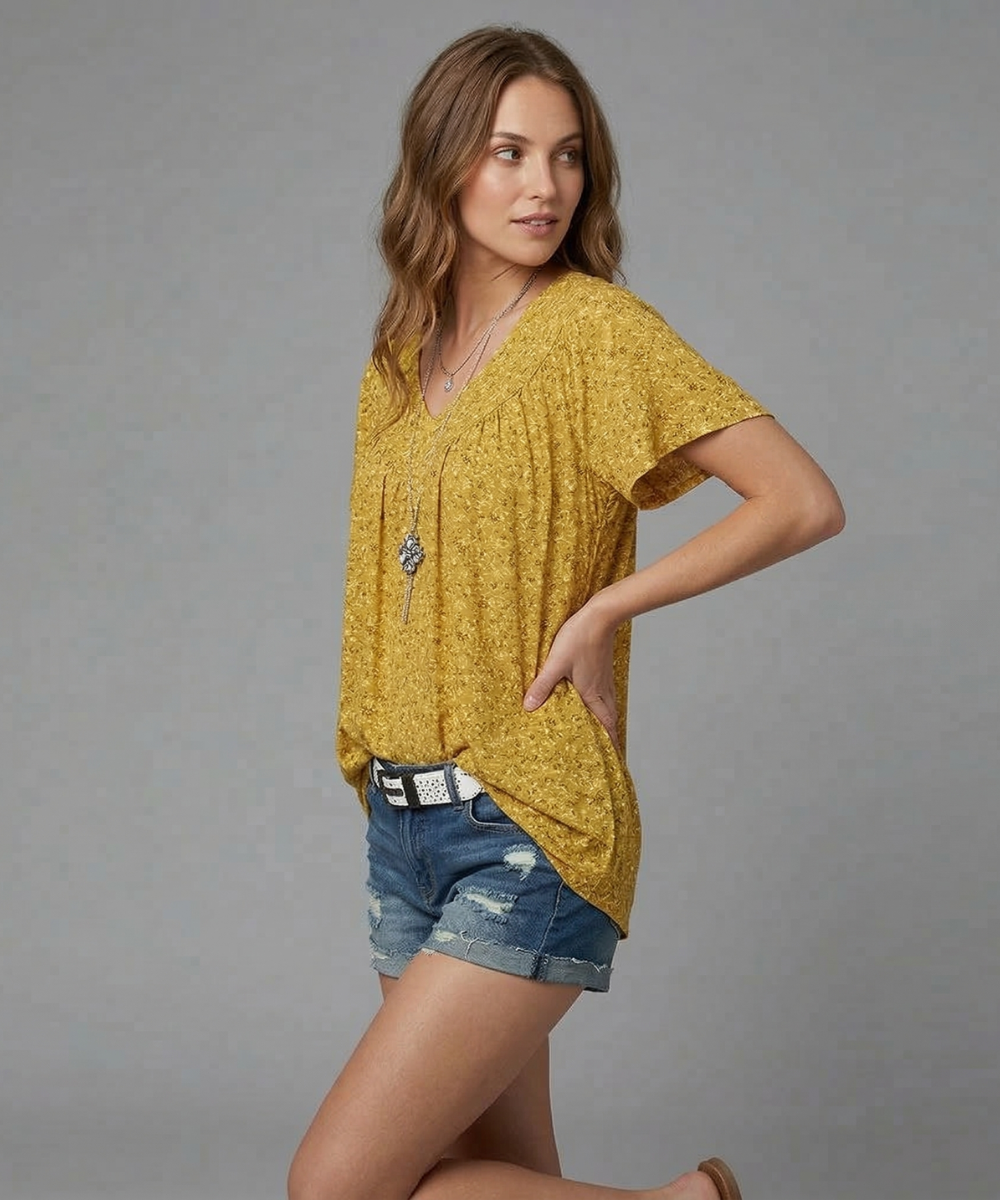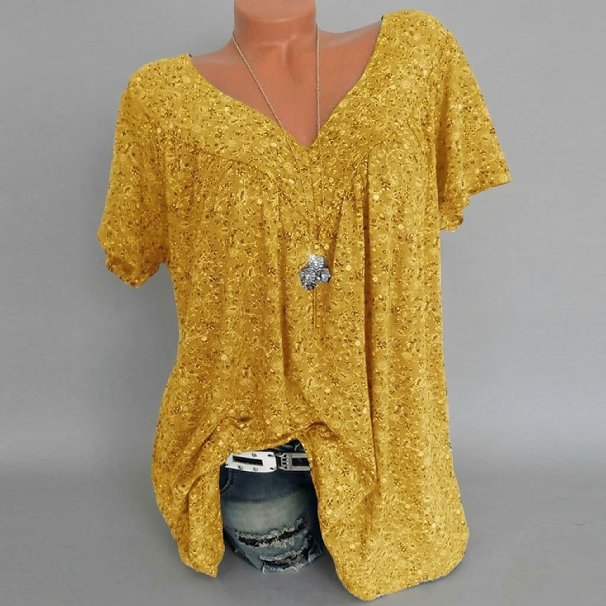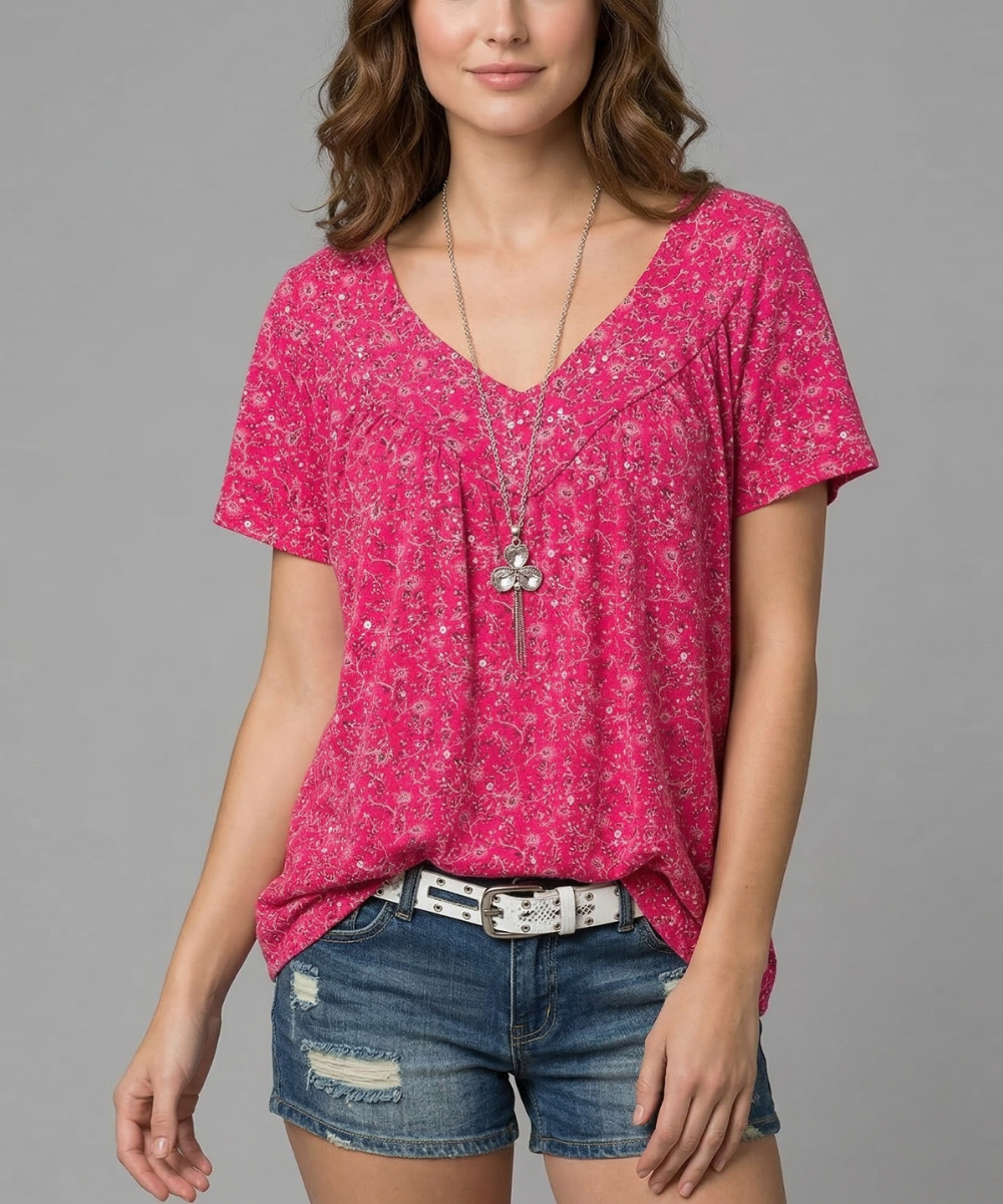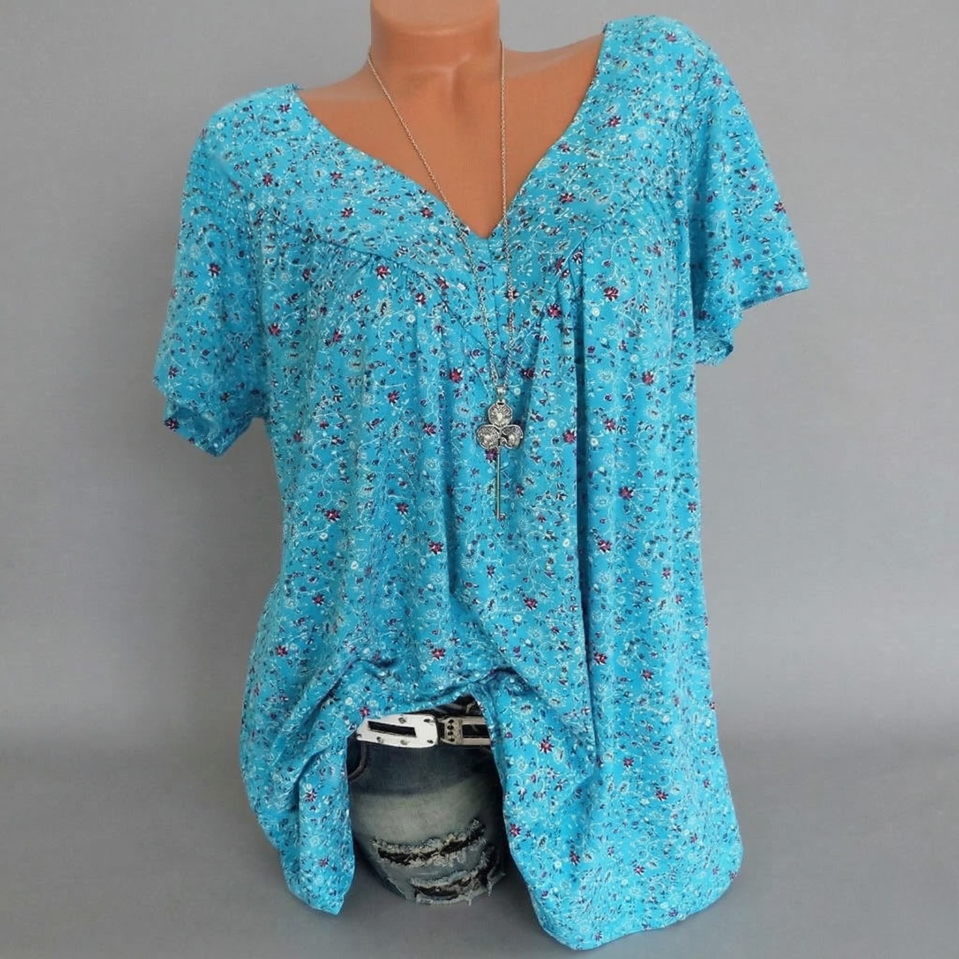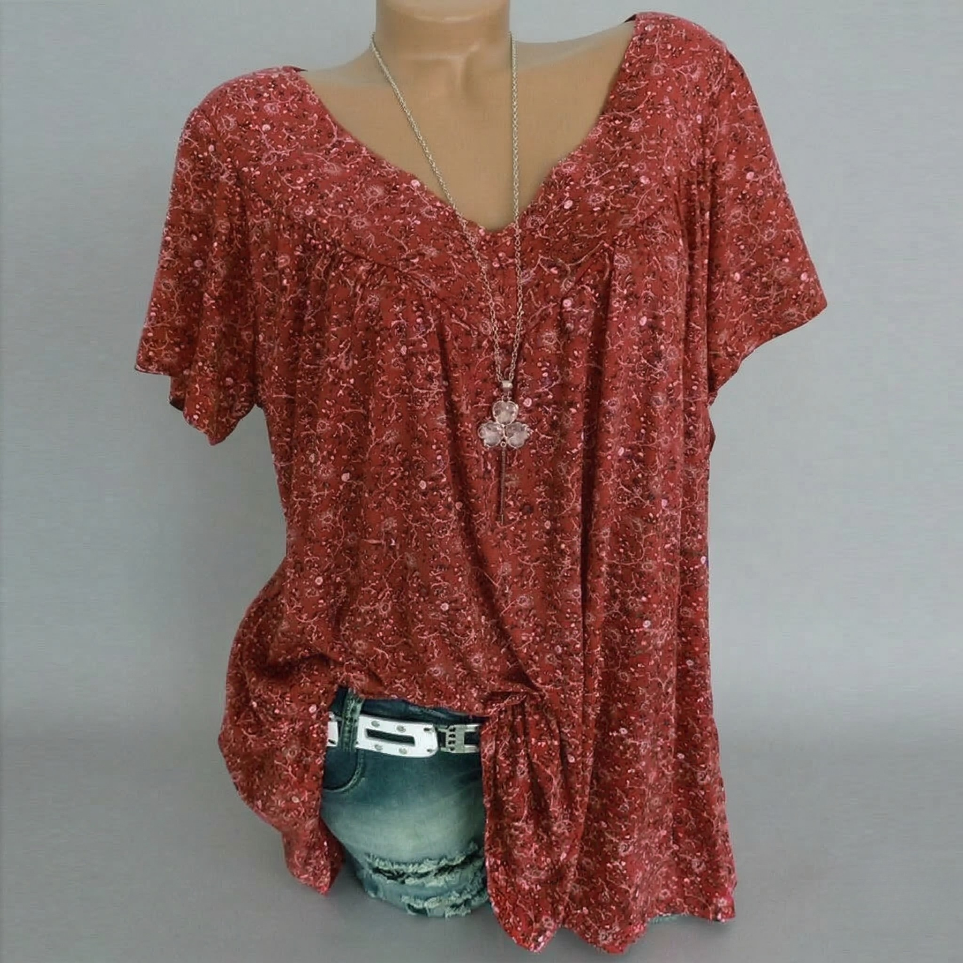 Le Avora Lyon | T-shirt Flora à col en V combine confort et une allure élégante et féminine. Le t-shirt possède un joli col en V et un imprimé floral élégant qui s’accorde parfaitement avec une tenue décontractée ou tendance. Grâce à sa coupe ample et à son tissu léger, le t-shirt est agréable à porter et idéal pour les journées chaudes.